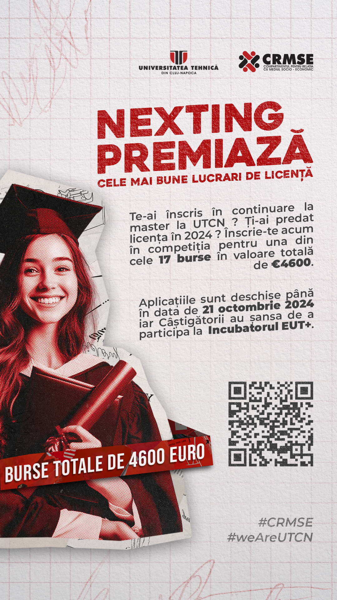 Nexting va acorda premii pentru 17 lucrări de licență din cadrul promoției 2023-2024. Suma totală a premiilor oferite ajunge la 4.600 de euro.