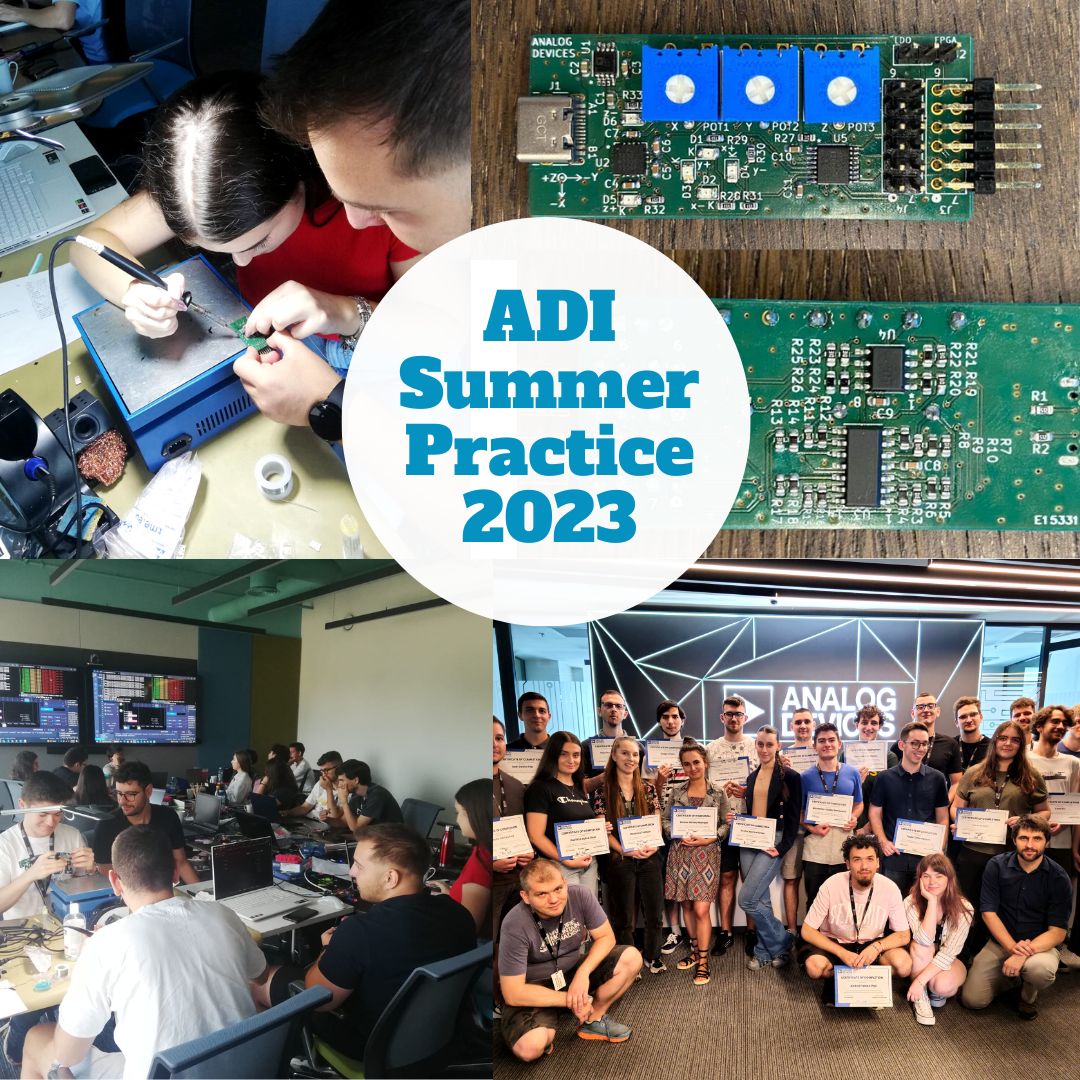 In perioada iulie - august anul acesta s-a desfasurat programul de practica de vara cu durata de 6 saptamani in cadrul companiei Analog Devices Romania. La acest program au participat 22 de studenti de la Universitatea Tehnica din Cluj-Napoca, de la facultatile: Electronica, Telecomunicatii si Tehnologia Informatiei, Automatica si Calculatoare si Inginerie Electrica.