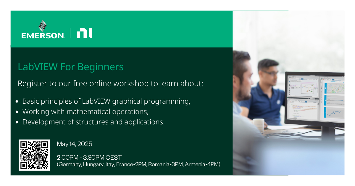 Emerson I NI is continuing its series of free technical workshops in English for university students. This time, the topic is "NI LabVIEW for Beginners".